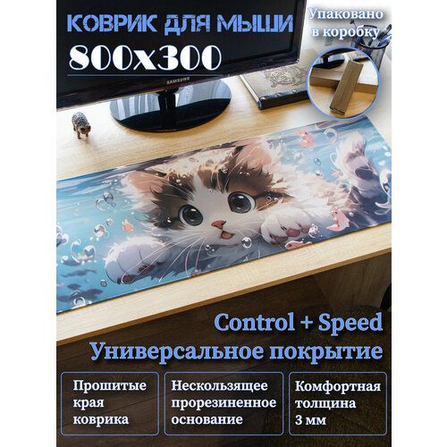 Найти - Коврик для мыши 800х300х3. Котик ловит рыбок