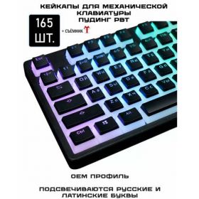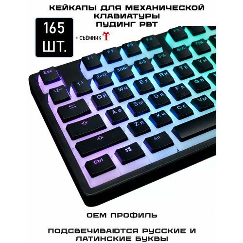 Черные двухслойные кейкапы, пропускающие подсветку от клавиатуры - клавиши для клавиатуры 165 шт.
