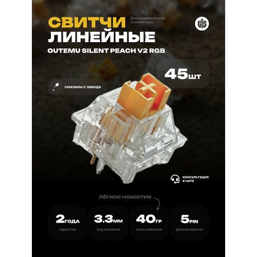 НАЙТИ ВЫГОДНЕЕ - Механические переключатели (свитчи) Outemu Silent Peach V2 RGB (45 штук), линейные, 5-pin,40 грамм