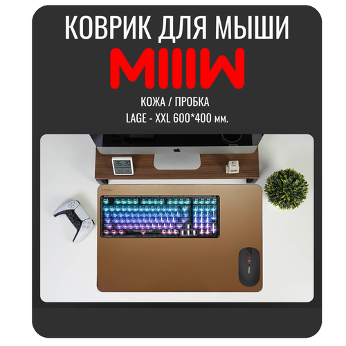 Найти - Коврик для мыши MIIIW Lage Leather Cork Mouse Pad XXL 600*400 мм. Коричневый Xiaomi Youpin Ecochain