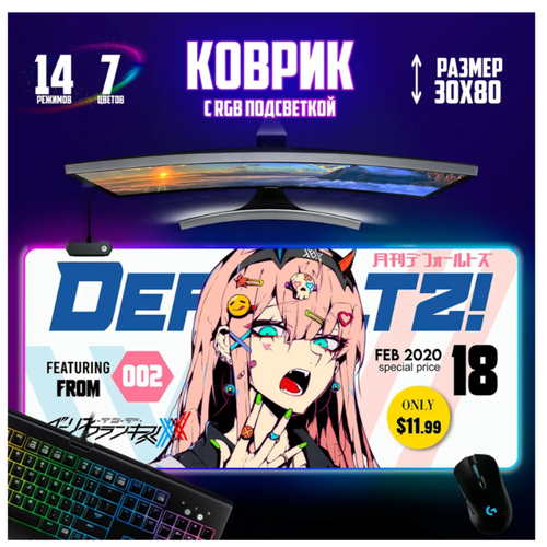 Найти - Игровой коврик для мыши с RGB подсветкой, водоотталкивающее покрытие, 800 х 300 х 4 мм, много режимов, коврик для клавиатуры и мыши, Zero Two