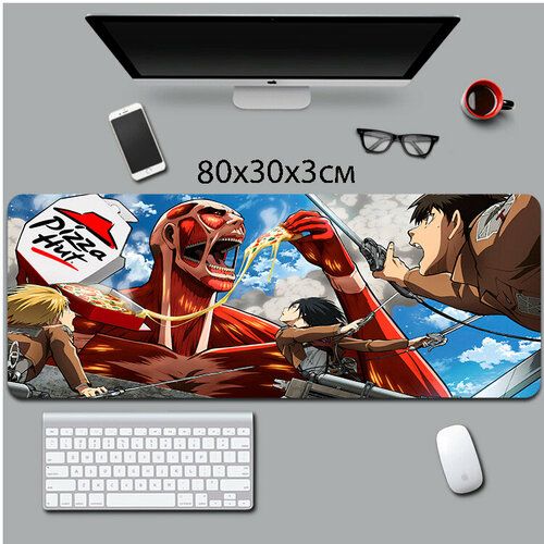НАЙТИ ВЫГОДНЕЕ - Коврик для мыши в стиле Аниме Атака Титанов, пицца №060 80x30x0.3см