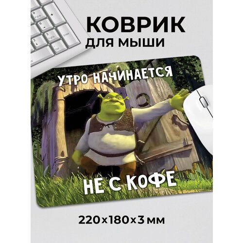 НАЙТИ ВЫГОДНЕЕ - Коврик для мышки с приколом мем Шрек Утро начинается с кофе