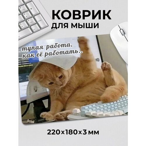 НАЙТИ ВЫГОДНЕЕ - Коврик для мышки с приколом мем милый котик Тупая работа как ее работать