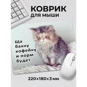 Найти - Коврик для мышки с приколом мем котик Ща бахну кофейку норм
