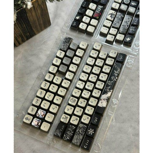 Комплект кейкапов с русскими буквами (клавиши для клавиатуры, большое количество в комплекте для любого форм-фактора механической клавиатуры. PBT полупрозрачный шершавый пластик)