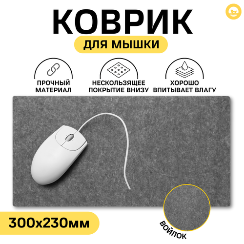 Найти - Коврик для мыши, войлок, 30 см x 23 см, противоскользящий, серый