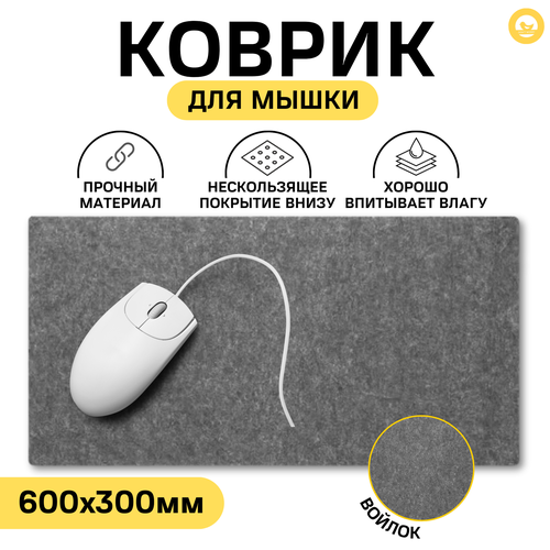 Найти - Коврик для мыши, войлок, 60 см x 30 см, противоскользящий, серый