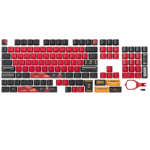 - Набор кейкапов с красно-оранжевой расцветкой, который сделан в стилистике популярного аниме Evangelion.