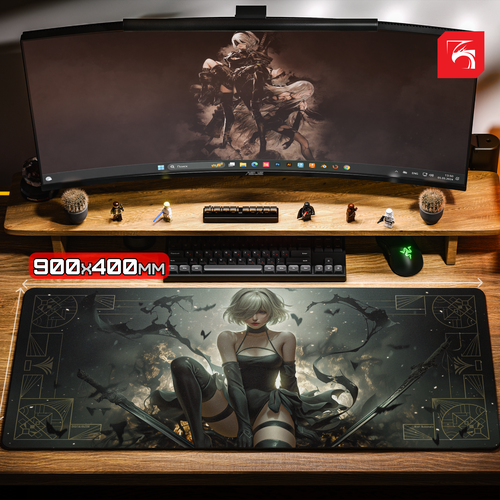 Найти - Игровой коврик для мыши DigitalRazor Nier Automata 2B Gray 900x400x4mm, черный, серый, белый