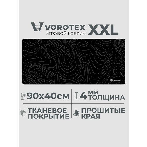 Найти - Игровой коврик VOROTEX XXL, 90х40 см, 4 мм, Black with white lines (Черный с белыми линиями)