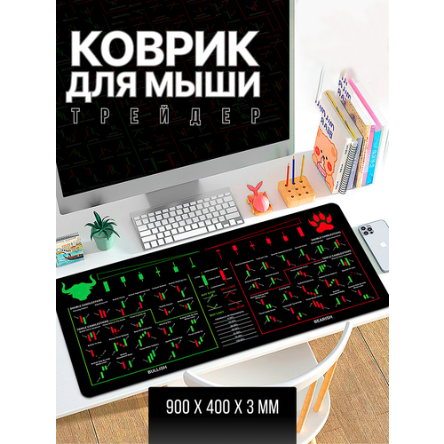 Найти - Игровой коврик для мыши большой, трейдер, свечные паттерны, торговля, 900 х 400 х 3 мм