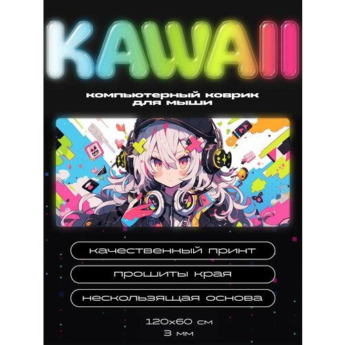Коврик для мышки идеального размера — 120х60 см, толщиной 3 мм, позволит удобно разместить на столе мышь, клавиатуру, монитор и другие необходимые устройства, будет во весь стол. Размер идеально подходит для полноценного комфорта и свободы движений во время игр или работы. С ярким и уникальным принтом в виде девушки геймера в наушниках, в стиле аниме и некоторыми нотками поп арта, он добавит нотку оригинальности в ваш игровой сетап. Погрузитесь в изящный мир искусства с игровым ковриком для мыши, стилизованным под милого кавайи персонажа. Этот коврик станет приятным акцентом вашего стола и подчеркнет ваш утонченный вкус. Специальная прорезиненная основа геймерского ковра для компьютерной мыши гарантирует надежную фиксацию его на столе, а гладкая тканевая поверхность обеспечивает высокую чувствительность к датчикам, точное скольжение мыши. Благодаря высококачественному материалу, коврик прослужит долго без потери привлекательного внешнего вида даже в условиях постоянно высокой нагрузки. Соедините функциональность и милую красоту кавайной аниме тян в одном аксессуаре. Превратите каждодневную работу за компьютером в эстетическое удовольствие