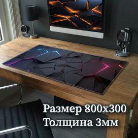- Оптимальный размер. Коврик имеет размеры 800х300 мм и толщину 3 мм — это обеспечивает достаточно места для свободного перемещения мыши и комфортной работы. Он подойдёт как для обычных пользователей, так и для тех, кто проводит много времени за компьютером, играев в игры и работает.