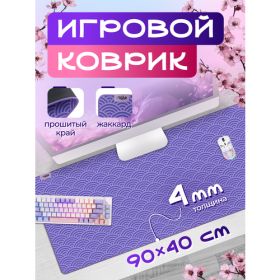 Коврик для мыши и клавиатуры STEAR LX-400-4 Nami XXL 90х40 сантиметров - это идеальный аксессуар для любителей японской культуры и стиля. Этот игровой коврик имеет принт, который состоит из светло-фиолетовых рисунков вееров, создающих уникальный узор. Этот компьютерный ковер добавит немного восточного колорита в ваш рабочий уголок, создаст атмосферу уюта и настроит на игровой лад. Данный коврик понравится всем поклонникам anime и Японии и добавит вашей комнате азиатского стиля. Вас заинтересует его прикольный print, а также его антискользящие и водоотталкивающие свойства благодаря основе из каучука. Ваша настольная периферия будет смотреться более организованно. Данный коврик может накрыть большую часть вашей столешницы и служить как защитный непромокаемый слой. Коврик изготовлен из качественных и долговечных материалов, которые обеспечивают его функциональность и удобство. Поверхность коврика сделана из текстурированной ткани жаккард с рисунком, которая имеет мягкое покрытие "Speed + Control" и оптимальное скольжение мышки. Это очень важный параметр для геймера и любителя киберспорта. Коврик имеет резиновую противоскользящую водонепроницаемую основу толщиной 4 мм, которая надежно фиксирует коврик на столе и предотвращает его деформацию. Вы можете положить его под свой геймерский ноутбук и насладиться приятным текстильным покрытием jaquard. Коврик имеет оверлок - края прошиты крепкой строчкой из 4 нитей. Универсальный коврик прямоугольной формы имеет средний размер - 900 на 400 мм, что позволяет разместить на нем не только мышь, но и клавиатуру, а также оставить достаточно свободного пространства для движений. Этот коврик подойдет для любого типа стола и обеспечит вам комфорт и эргономику при работе или игре. Это идеальный аксессуар для вашего ПК и офиса, который добавит стиль и универсальность в вашу рабочую обстановку. В нашем магазине вы найдете и другие товары компьютерной периферии в стиле gaming.
