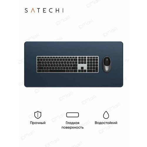 НАЙТИ ВЫГОДНЕЕ - Коврик для мыши и клавиатуры большой из веганской кожи Satechi Vegan-Leather Premium Desk Mat. Цвет: синий