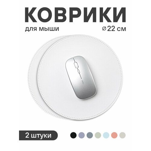 Найти - Коврики для мыши 2 шт, круглые, диаметр 220 мм, водонепроницаемый, кожаный, на рабочий стол для офиса и дома, белый