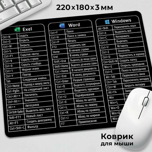 Коврик для мышки Сочетания клавиш Горячие клавиши шпаргалка. Коврик для мыши с Сочетания клавиш Горячие клавиши шпаргалка - идеальный компьютерный аксессуар для любителя поесть, геймера, программиста, анимешника. Оригинальный яркий принт станет отличным подарком на день рождения, Новый год, день всех влюбленных, 23 февраля, 8 марта, геймеру, программисту, лучшей подруге, моей ЛП, детская сыну, дочери, мальчику, девочке, папе, маме, любимой, любимому, мужу, жене, брату, сестре, другу, мужчине, женщине, парню, девушке, коллеге, сотруднику на работе, начальнику, учителю, любому человеку, который проводит много времени за компьютером, а также станет незаменимым предметом обихода дома или просто сувениром. Новогодний коврик, восточный китайский календарь Змея Символ года, фигурка змеи, змейка, мягкая игрушка. Коврик для мыши с приколом маленький с рисунком прикольный милый с принтом смешной с котиками с котом игровой компьютерный белый черный женский розовый для девочки серый коврик с мемом – идеальный компьютерный аксессуар для геймера, программиста, бухгалтера. Купите наш яркий крутой коврик мем для мышки и вам не понадобится коврик для мышки и клавиатуры в виде ковра, большой с аниме, с подушкой под запястье или с подсветкой. Резиновое нескользящее основание надежно фиксирует ковер на столешнице, он не скользит и не смещается. Мягкая ткань покрытия обеспечивает высокую скорость и легкость скольжения, а также делает работу за компьютером более эффективной.