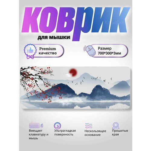 Найти - Коврик для мышки большой в японском стиле 700 х 300 синие горы
