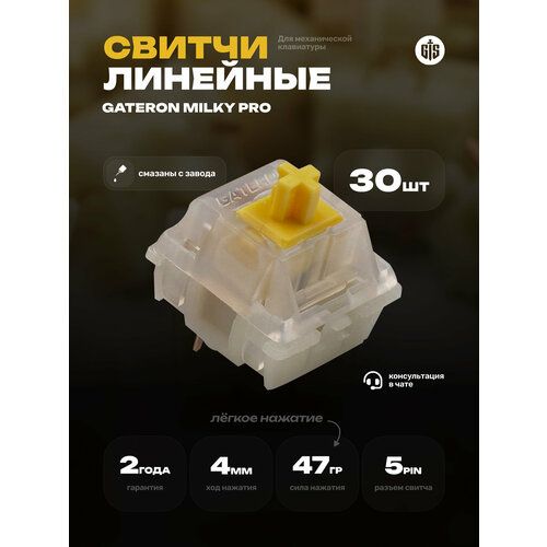 НАЙТИ ВЫГОДНЕЕ - Механические линейные переключатели (свитчи) KS-3 Gateron Yellow Milky Pro 30 штук, линейные, смазаны, 5-pin, 47 грамм