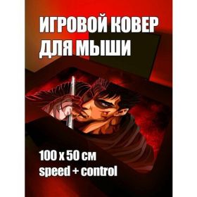 Большой игровой ковер для мыши изготовлен из современного материала, который отличается высокой прочностью, износостойкостью и устойчивостью к истиранию. Коврики обеспечивают плавное и точное скольжение мыши, а также легко поддаются очистке. Большой игровой коврик для мыши, с новой более плотной и крепкой прошивкой краев, отличает оригинальный, стильный, универсальный, в стиле аниме дизайн поэтому не изнашивается, не деформируется при длительном использовании. Геймерский коврик подходящий к любой периферии, придаст вашему рабочему месту стиль в офисе и дома, подходит для всех типов игр, от динамичных FPS-шутеров до масштабных MMORPG и был разработан с учетом мнений профессиональных игроков из CS: GO, VALORANT, DOTA 2, APEX LEGENDS, OVERWATCH, FORTNITE. Большой размер 1000 x 500 мм отлично подойдет каждому пользователю. Удобство и комфорт при работе за ПК или ноутбуком. Является лучшим подарком для геймера. Коврик для мышки оптимизирован для быстрого движения, сохраняя при этом превосходную скорость и контроль во время работы или игры, доступен для беспроводных и оптических мышек. Быстрое скольжение мыши по ковру. Покрытие Speed + Control. Оно обеспечивает плавное и быстрое скольжение мыши, а также точный контроль и высокую управляемость. Такое покрытие идеально подходит для пользователей, которым требуется как высокая скорость перемещения, так и точность позиционирования, например, для игр или профессиональной работы. Сбалансированные характеристики Speed + Control делают его универсальным решением для широкого круга задач. Прочная текстурированная основа из резины надежно фиксирует ковер на столе. Хорошо работает на всех типах поверхности. Прошитые края обеспечат отличный вид ковра на долгий срок. Данный ковер сделан в тематике: Берсерк, Berserk, Гатс, Миура, меч, тьма, эпик, манга, аниме, dark fantasy