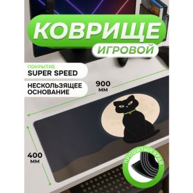 Игровой коврик для мышки 90x40 с изображением черного кота на фоне луны: таинственность и стиль