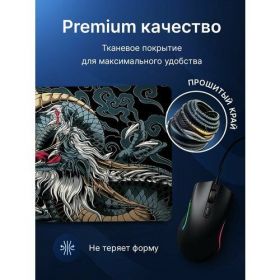 *Коврик компьютерный большой с изображением китайского Дракона, размер: 900х400 позволяет полностью погрузиться в игровую атмосферу, не ограничиваясь игровой площадью для мыши.
