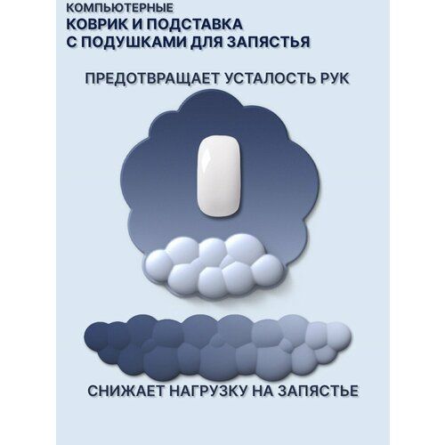 Найти - Коврик для мышки с подушкой и подставка под запястье для клавиатуры Облако, синий градиент