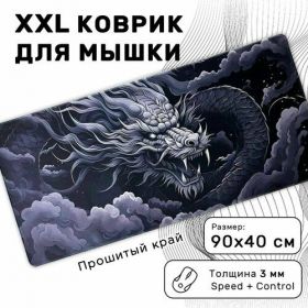Найти - Большой игровой коврик в японском стиле для мышки и клавиатуры 90х40 см, японский дракон в облаках