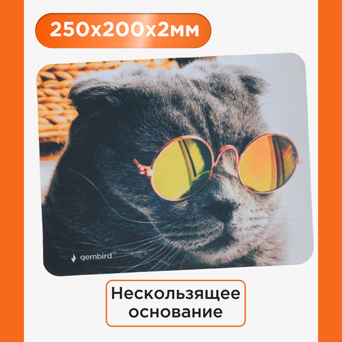 Коврик для мыши Gembird MP-ART39 с рисунком "кот в очках" представляет собой стильный и функциональный аксессуар для вашего рабочего места.