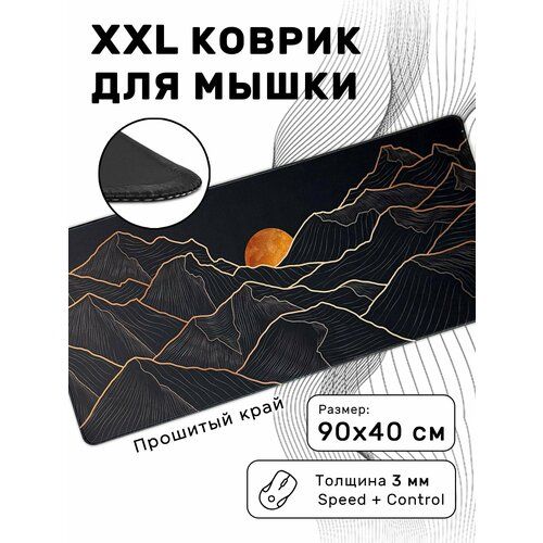 Найти - Большой игровой коврик в японском стиле для мышки и клавиатуры 90х40 см, графика золотые горы