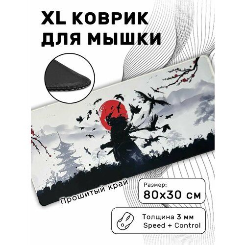 НАЙТИ ВЫГОДНЕЕ - Большой игровой коврик в японском стиле для мышки и клавиатуры 80х30 см, самурай и красное солнце