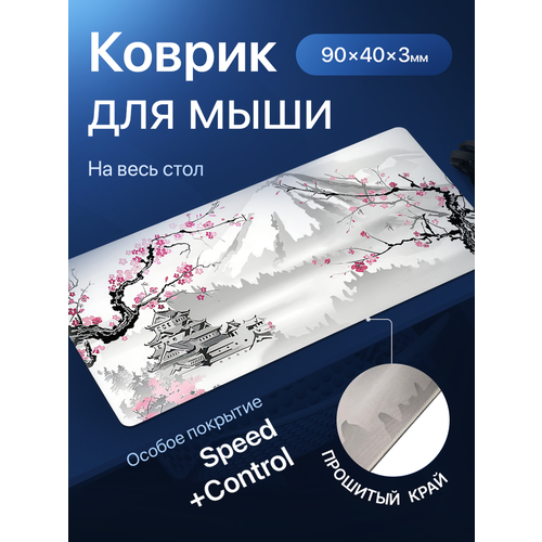 *Коврик компьютерный большой с изображением цветка Сакуры, размер: 900х400 позволяет полностью погрузиться в игровую атмосферу, не ограничиваясь игровой площадью для мыши.