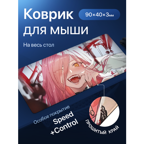 *Коврик компьютерный большой с изображением персонажа POWER из аниме "Человек-бензопила", размер: 900х400 позволяет полностью погрузиться в игровую атмосферу, не ограничиваясь игровой площадью для мыши.