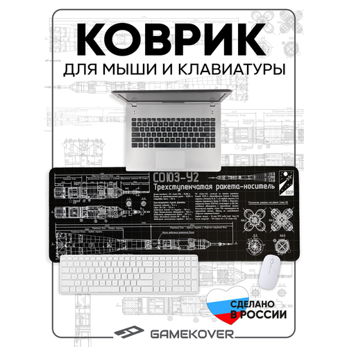 Коврик для мышки большой, игровой, с принтом. Размер 800х300х3мм . Коврик для мышки обладает гладкой поверхностью, которая идеально подходит для оптических и лазерных мышей с любой чувствительностью и любым типом сенсора, speed control. Резиновая основа хорошо предотвращает скольжение по поверхности стола. Оптимальная толщина коврика для мыши - 3 мм. Игровой коврик для мышки можно мыть вручную с помощью влажной губки и мыльной воды. Края коврик для мыши обработаны оверлоком (прошитый край), что обеспечит максимально долгий срок службы. Принт: ракета Союз 2, ракета Союз-2, чертеж. Также в нашем ассортименте есть большие коврики для мыши 90х40 см (900 на 400мм)