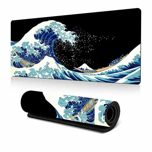 НАЙТИ ВЫГОДНЕЕ - Коврик для мыши Волна 90x40x0.3см, (22-черный/голубой)