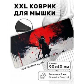 Найти - Коврик для мышки большой, игровой коврик в японском стиле для мышки и клавиатуры 90х40 см, самурай с катаной на фоне красной луны
