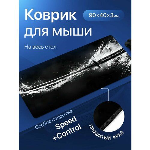 Найти - Игровой коврик для мыши большой черный, японская Катана, 900х400х3