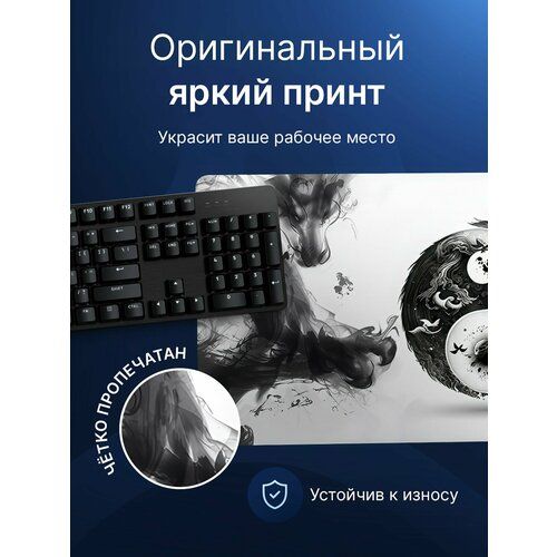 *Коврик компьютерный большой с изображением рисунка Инь-Янь, размер: 900x400 позволяет полностью погрузиться в игровую атмосферу, не ограничиваясь игровой площадью для мыши.