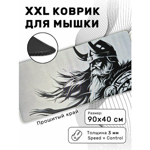 НАЙТИ ВЫГОДНЕЕ - Большой игровой коврик для мышки и клавиатуры 90х40 см, скандинавский викинг в шлеме