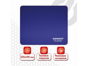 Коврик для мыши SONNEN "BLUE", резина + ткань, 220х180х3 мм, 513308 101345071803