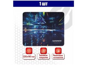 Коврик для мыши SONNEN "SINGULARITY", резина + ткань, 220х180х3 мм, 513293 101468256452