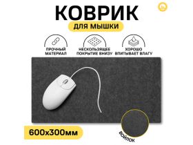 Коврик для мыши, войлок, 60 см x 30 см, противоскользящий, серый 103652121941