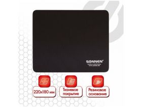 Коврик для мыши SONNEN "BLACK", резина + ткань, 220х180х3 мм, 513309 1895641254