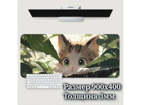 Коврик для мыши 900х400х3 Котик в листьях под дождем 4546252112