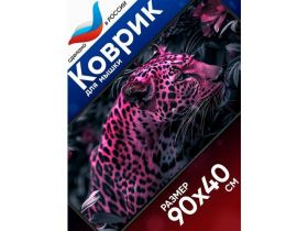 Большой игровой коврик для мышки с принтом, 90х40 см, Леопард фуксия. Компьютерный ковер с 3D дизайном под клавиатуру и мышь на весь стол. 103036377630