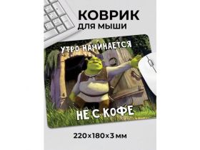 Коврик для мышки с приколом мем Шрек Утро начинается с кофе 103270946820