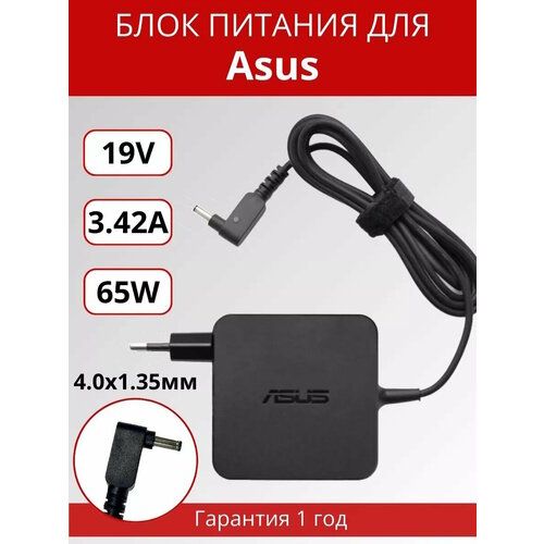 Блок питания для ноутбука Asus 19V 3.42A, 4.0x1.35мм, 65W, квадратный корпус, с сетевым кабелем, ORG