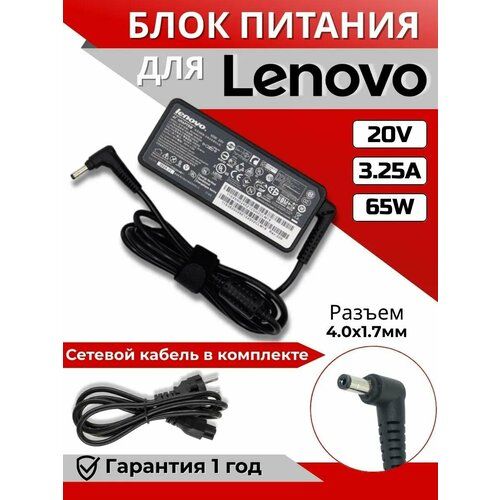 Блок питания для ноутбука Lenovo 20V, 3.25A, 4.0x1.7мм, 65W, без СК