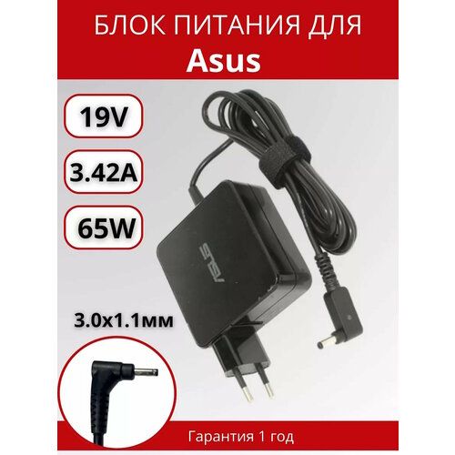 Блок питания для ноутбука Asus 19V, 3.42A, 3.0x1.1мм, 65W, без сетевого кабеля